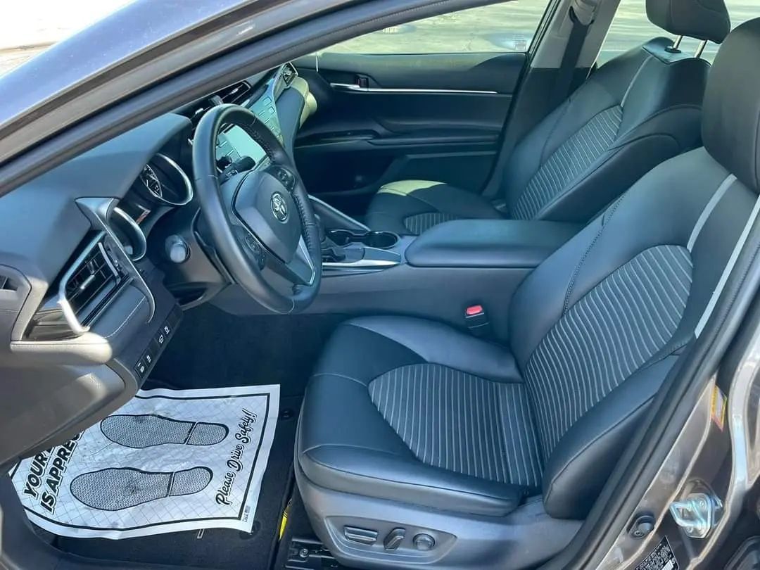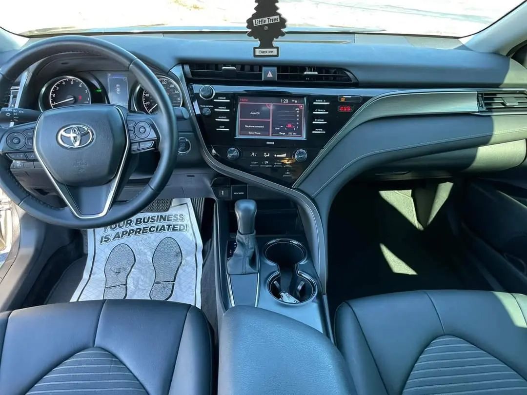 The 2020 Toyota Camry asserts midsize sedan excellence with its eighth-generation TNGA platform, offering eight trims from efficient LE to sporty TRD and premium XSE, blending sharp styling, engaging dynamics, and proven reliability for families and commuters. Power comes from a standard 2.5-liter Dynamic Force four-cylinder producing 203 horsepower and 184 lb-ft of torque (206 hp in XSE), or an optional 3.5-liter V6 with 301 horsepower and 267 lb-ft, both paired with an eight-speed automatic and front-wheel drive. Acceleration hits 0-60 mph in 7.5 seconds for the four-cylinder and 5.7 for V6, with EPA fuel economy leading at 28/39 mpg city/highway for LE (up to 32 combined in hybrid variants, though not detailed here), aided by lightweight construction under 3,600 pounds. Chassis tuning with independent MacPherson struts front and multi-link rear, plus available sport suspension on SE/TRD, delivers composed handling and a compliant ride, enhanced by electric power steering and drive mode select for Normal, Eco, and Sport settings. Interior space accommodates five with 38.3 inches of rear legroom and 15.1 cubic feet of trunk volume, featuring available leather-trimmed heated/ventilated seats, JBL nine-speaker audio, and a quiet cabin via extensive sound deadening. Toyota Safety Sense 2.5 standardizes pre-collision system with pedestrian detection, full-speed dynamic radar cruise control, lane departure alert with steering assist, and automatic high beams across seven airbags, earning IIHS Top Safety Pick+ and NHTSA five-star ratings. Infotainment centers on a 7- or 9-inch touchscreen with Apple CarPlay, Android Auto, Amazon Alexa, navigation, and Wi-Fi Connect, supported by Entune 3.0 and remote services via smartphone app.