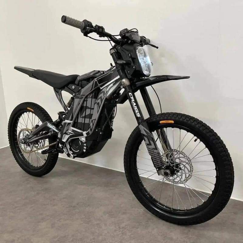 The 2024 SUR‑RON Light Bee X is a trail‑ready electric bike that combines premium performance with agile design. It features a removable 60 V/40 Ah lithium‑ion battery delivering up to 75 km of range at a steady 40 km/h and charges fully in around three hours. (Sur-Ron Global) A peak motor power of 6,000 W (≈ 250 Nm of torque) and a top speed of approximately 75 km/h enable exhilarating acceleration and hill‑climbing capability. (Sur-Ron Global) The bike’s lightweight 56 kg (123 lb) curb weight and 830 mm seat height make it accessible and nimble, ideal for a wide range of riders. (Dias Customs) It sits on a forged aluminium alloy frame with adjustable off‑road suspension and a ground clearance of around 270 mm for confident handling on rough terrain. (EBMX) A ride‑by‑wire throttle system with dual hall sensors, regenerative braking and configurable Eco/Sport modes enhance control and efficiency. (SUR RON ELECTRIC BIKE) The drive train uses a primary belt plus a 420 chain for reliable power delivery with minimal maintenance. (youngpowersportslogan.com) Though not road‑legal in many jurisdictions, this model excels in off‑road environments, delivering a modern, electric alternative to traditional dirt bikes. (Sur-Ron Global) With its refined styling, high‑spec components and a compelling power‑to‑weight ratio, the Light Bee X remains a top contender in the electric dirt‑bike category.